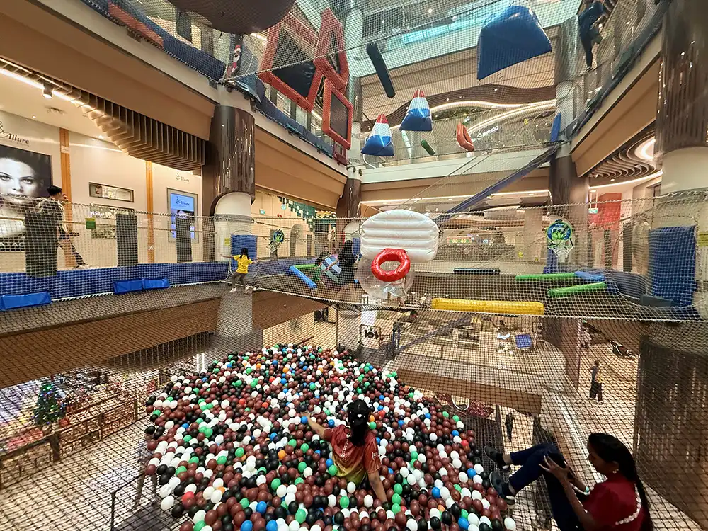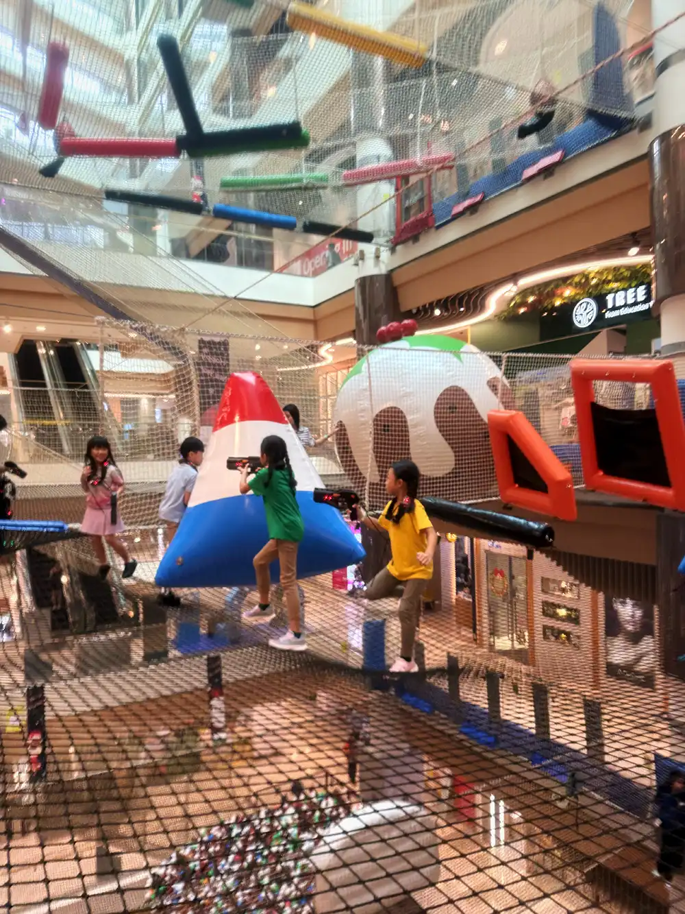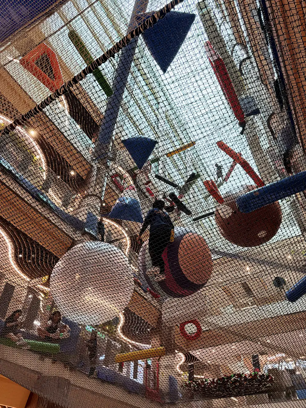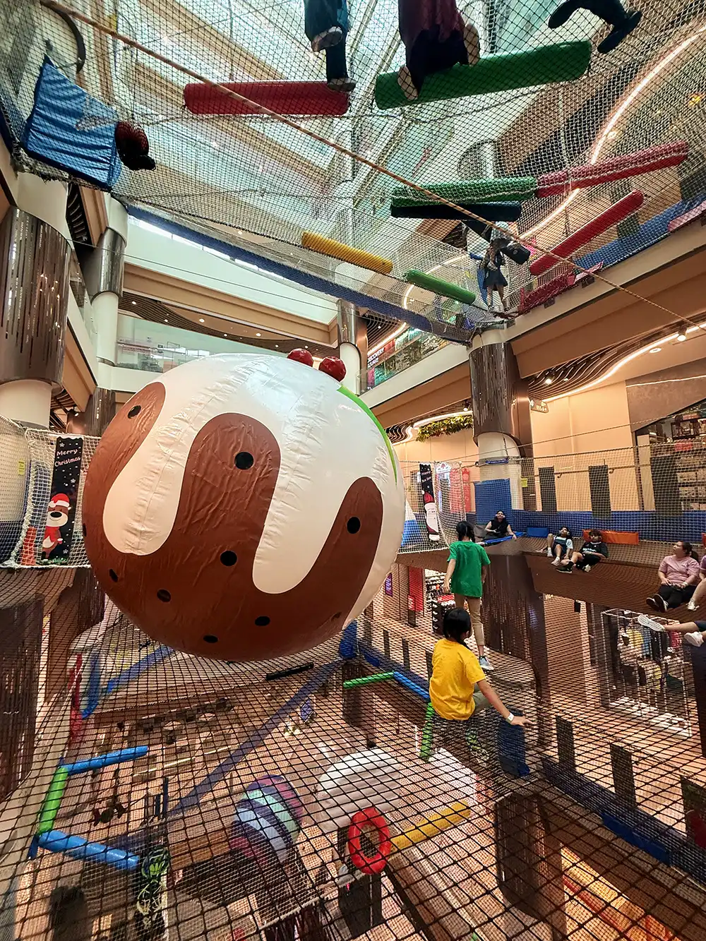 Airzone brings that experience to life at City Square Mall, where suspended nets stretch across levels 2 to 6, creating one of Singapore's most unusual indoor playgrounds.