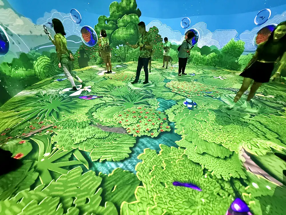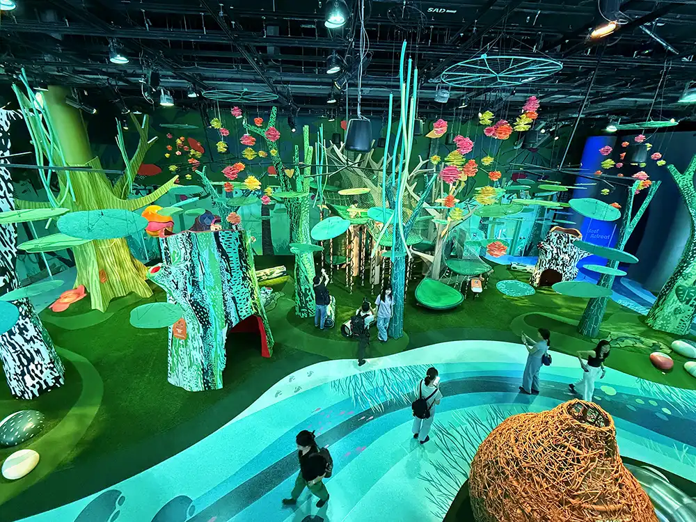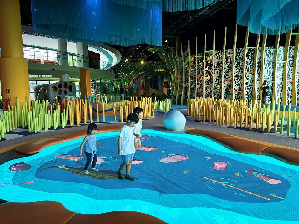 With over 32 multi-sensory touchpoints scattered throughout, your little ones can shake hanging vines to trigger lights and sounds, experiment with digital effects that respond to movement, and so much more.