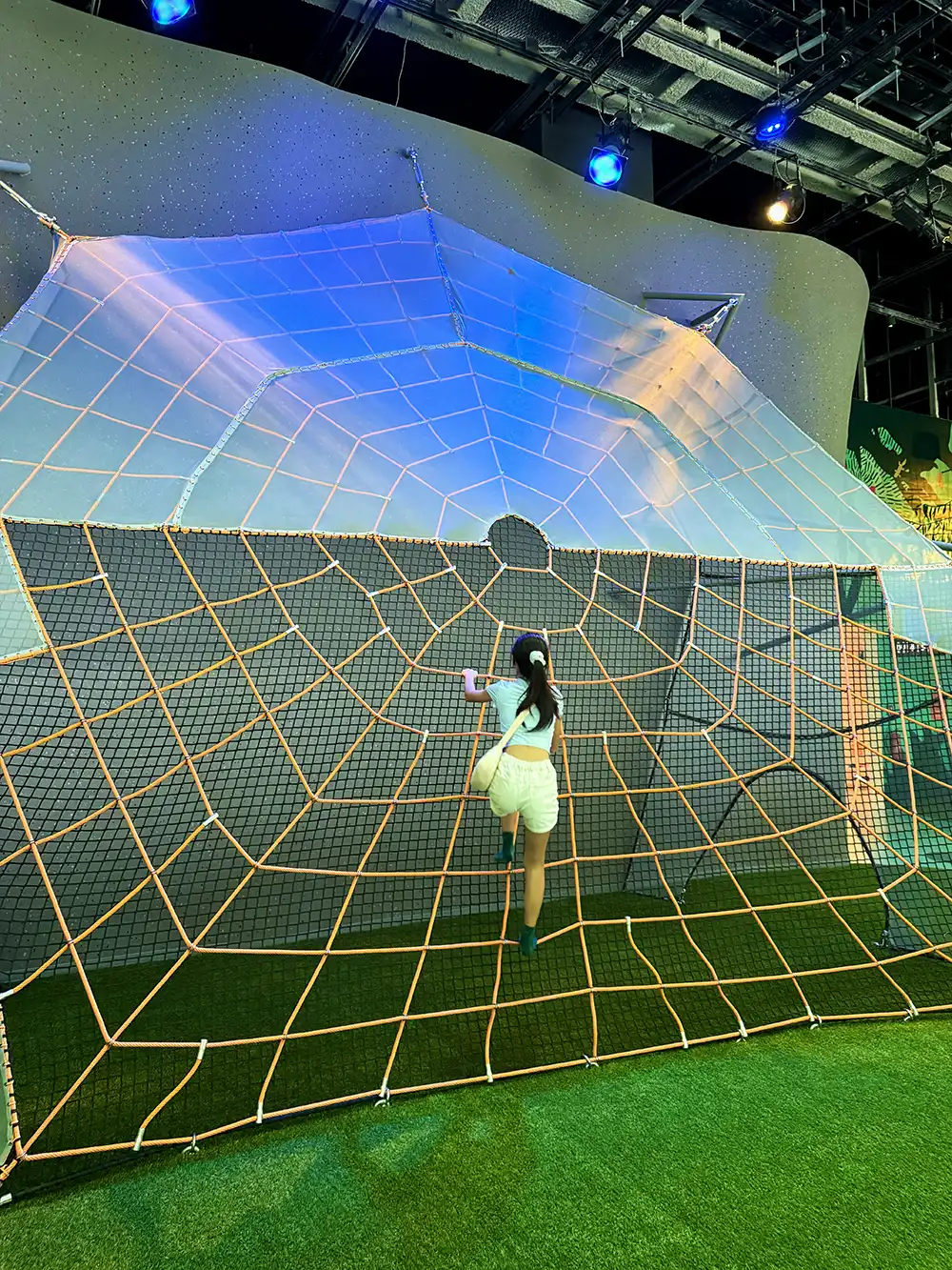 Kids can climb onto the leafy nests on the 6-metre tall Orangutan Sleeping Platform (yes lounging like an Orangutan is officially encouraged here), or test your agility on the Giant Spiderweb suspended above the ground.