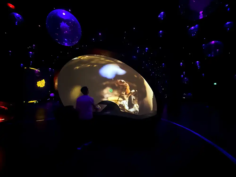 This is the blockbuster zone. Walk among life-sized prehistoric creatures brought to dramatic life through monumental installations and augmented reality windows, complete with sound effects and floor vibrations that really sell the scale.