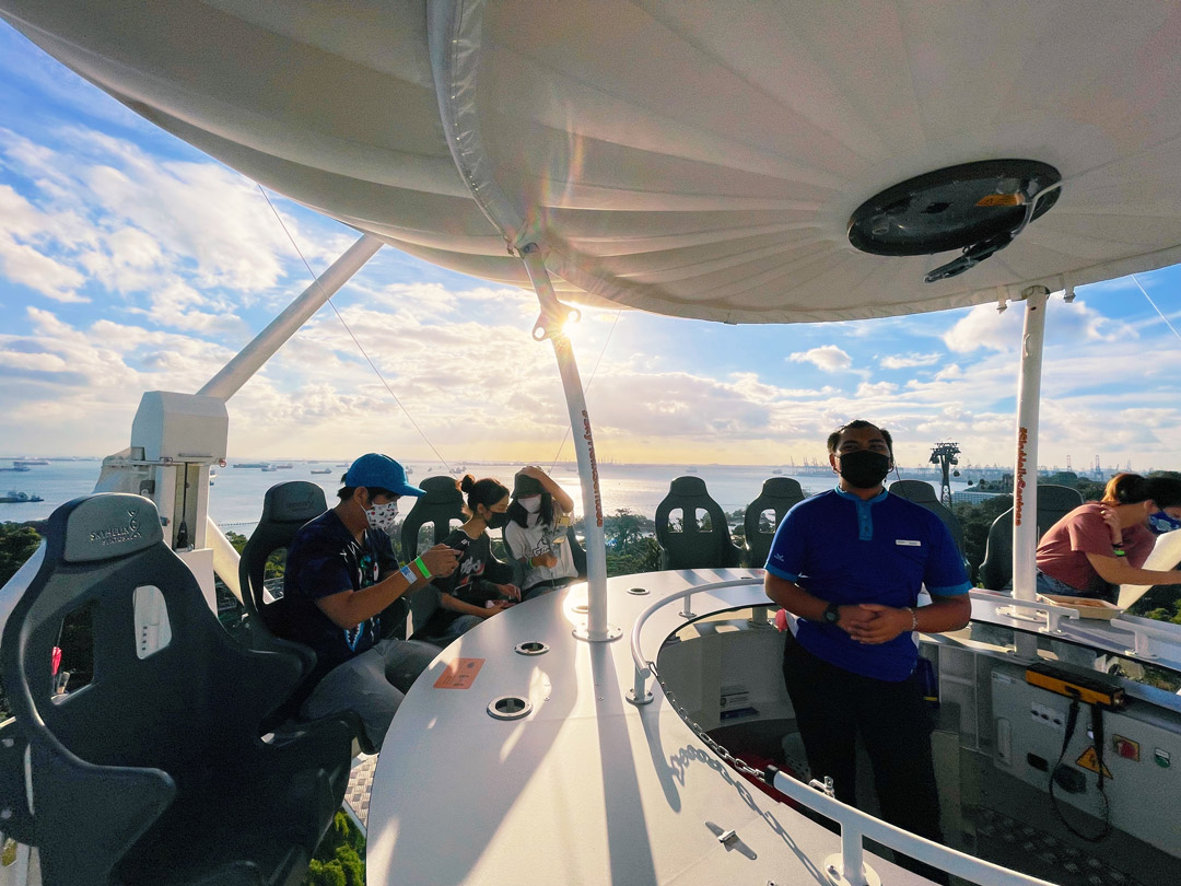 Every ride lasts about 12 minutes, including 10 minutes at the peak where the gondola will rotate slowly so you'll get 360 degree views of Sentosa and the Greater Southern Waterfront.
