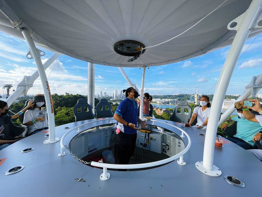 The highest point of the ride is at 79 metres, which makes it one of the highest vantage points in Sentosa.