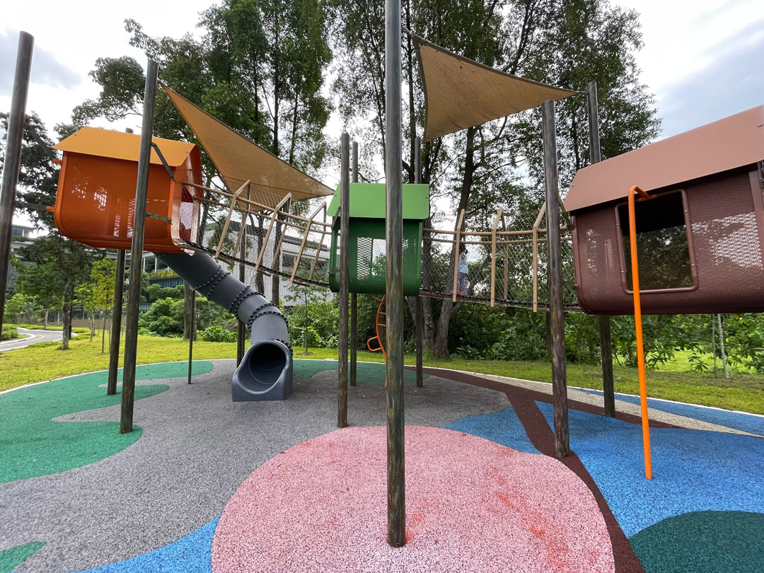 Located at Yishun N8 Park, this new playground has one of the most unique designs in Singapore, featuring colorful playhouses on stilts.