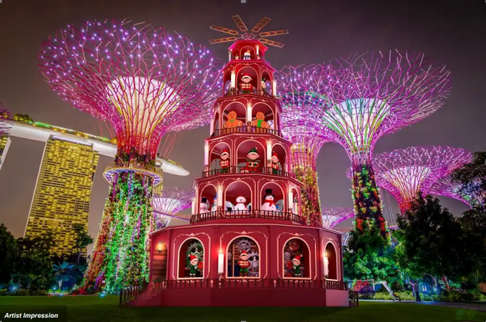 This year introduces three never-before-seen highlights: Flying Santa gliding through the sky above the gardens, Father Christmas welcoming guests at his stable alongside a quartet of reindeer, and Singapore's first-ever towering Christmas Pyramid.