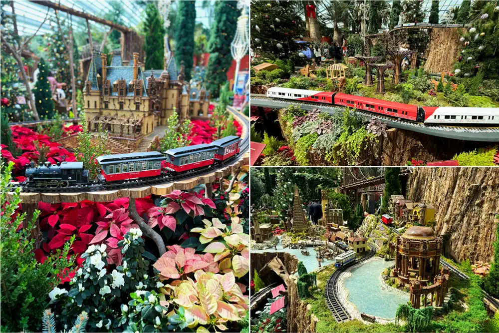 The Flower Dome transforms into a magical holiday railway wonderland, blending a classic American Christmas tradition with a Singaporean twist.