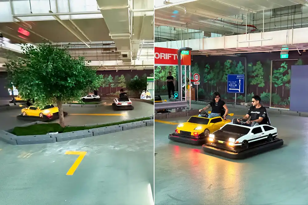 At DORIFTO! beginners and experienced drifters alike can get behind the wheel of a mini Toyota AE86 or Mazda RX-7 and start sliding through a track inspired by Japan’s legendary mountain passes.