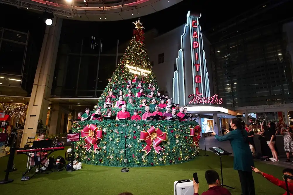 Experience the magic of the season with Voices of Singapore (VOS) at the Capitol Singapore Singing Tree, where snowfalls happen every 30 minutes from 6.30pm to 9pm.