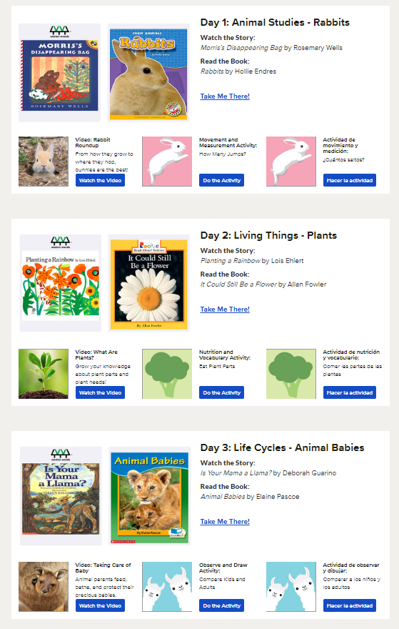 The lesson plans cover a wide range of subjects such as math, literacy, science, and social studies. There are also activities such as games to get the kids up and moving, projects and experiments to get them thinking, virtual field trips, challenges, and many other activities.