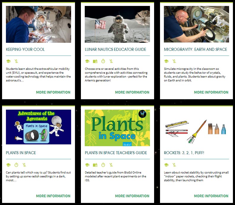 There are downloadable lesson plans and activities on the site where you can learn about a whole range of topics from space nutrition and expeditionary skills to microgravity and rockets.